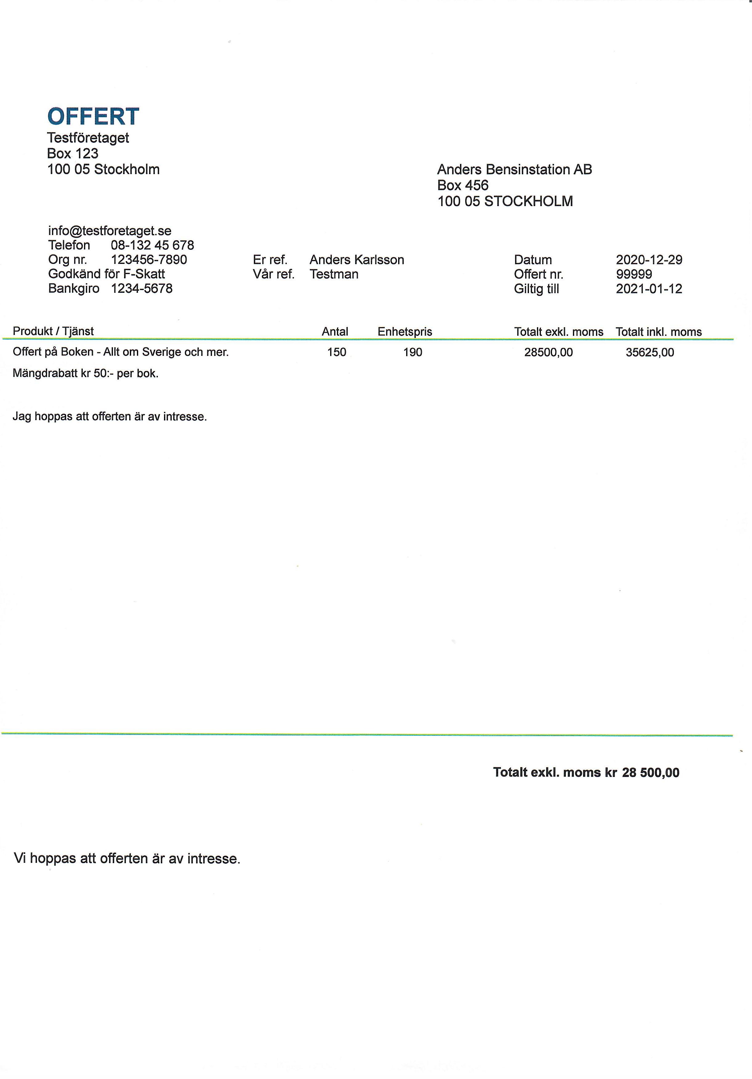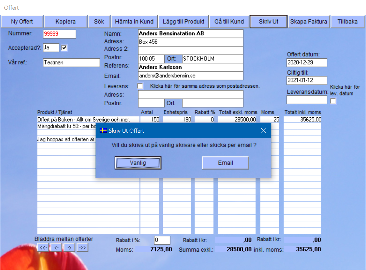 Offerten skriver du ut på vanlig eller pdf skrivare