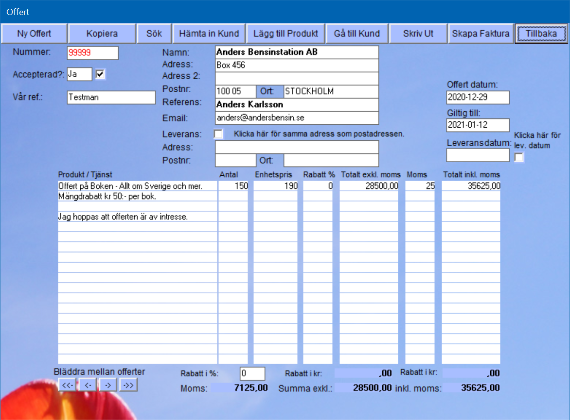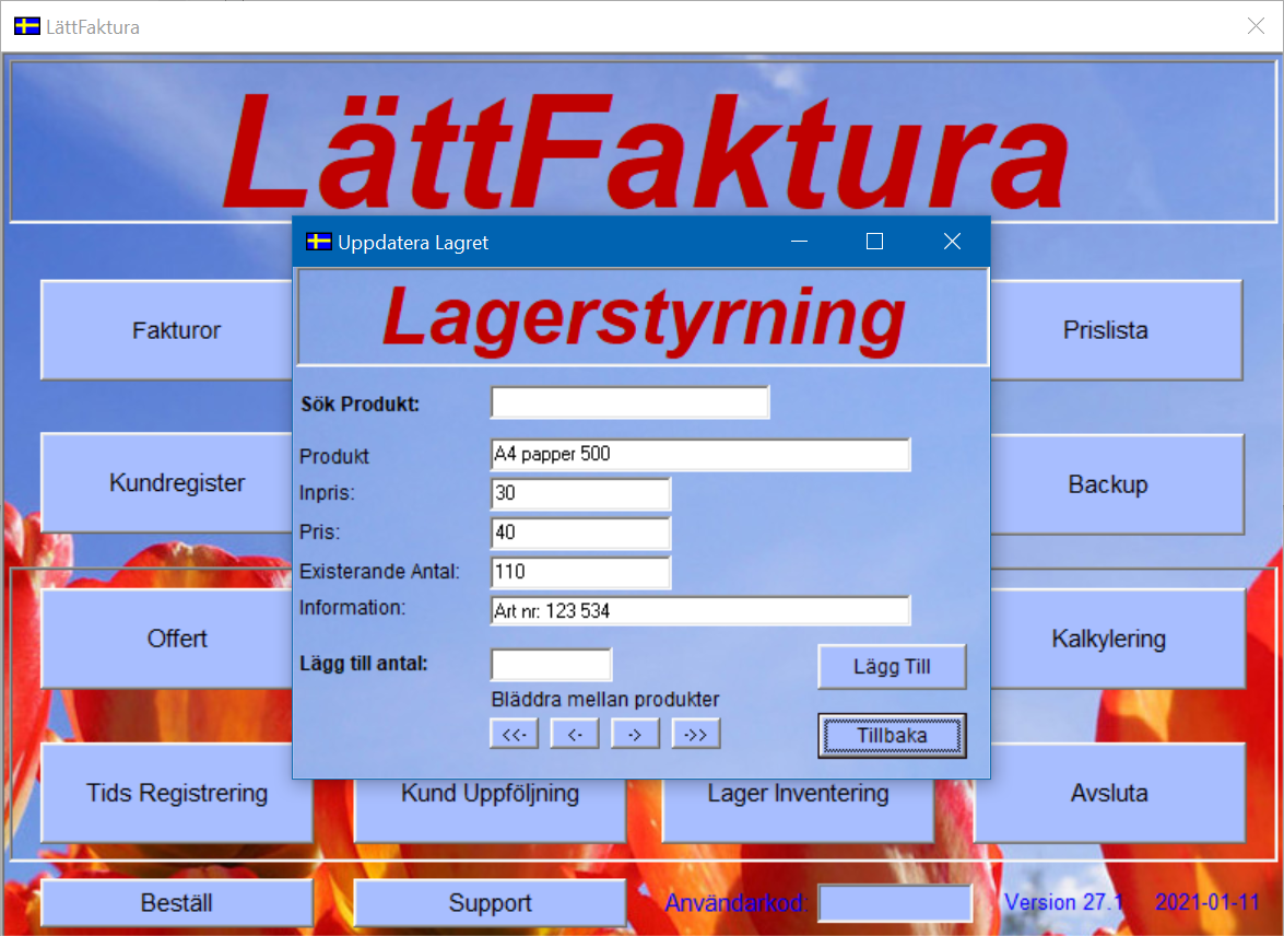 Hej igen! Tack för snabbt svar. Vill gärna veta om vi kan betala för support per gång om vi behöver hjälp? Men jag tvivlar på det, det har ju fungerat felfritt sen vi fick det. Rekommenderade även programmet till min bror, B. Transport, förra året och han är lika nöjd som vi, ett otroligt lättlärt och enkelt att använda. MVH